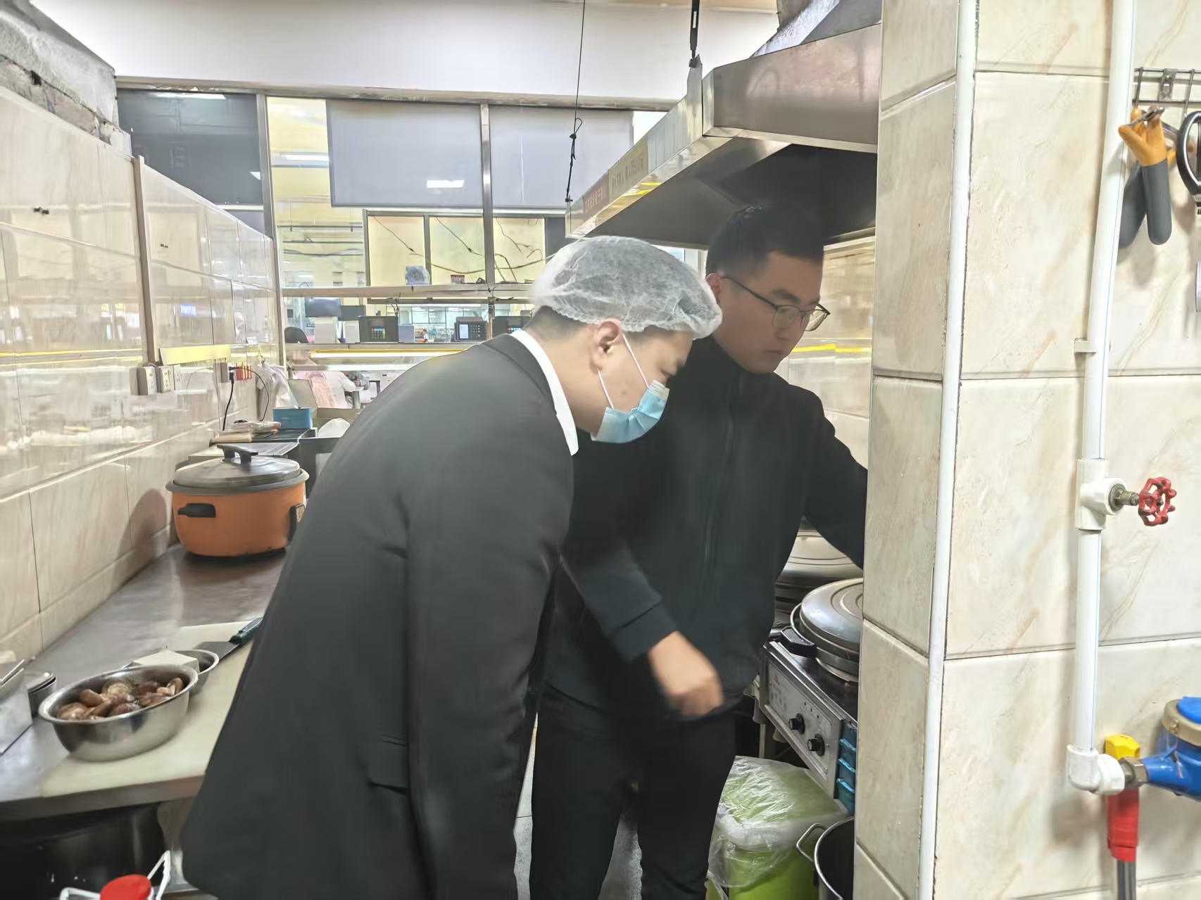 检查过程中,检查组重点聚焦用电安全、消防安全、食品安全三大核心领域,每到一处都严格查验、不留死角。在食堂及校内各商铺,工作人员详细检查了燃气管道、阀门是否存在泄漏隐患,电器设备线路是否老化、私拉乱接现象,同时随机抽查了食品采购台账、食材储存条件、餐具消毒流程等,严格把控食品卫生安全关,坚决杜绝变质、过期食品流入校园。